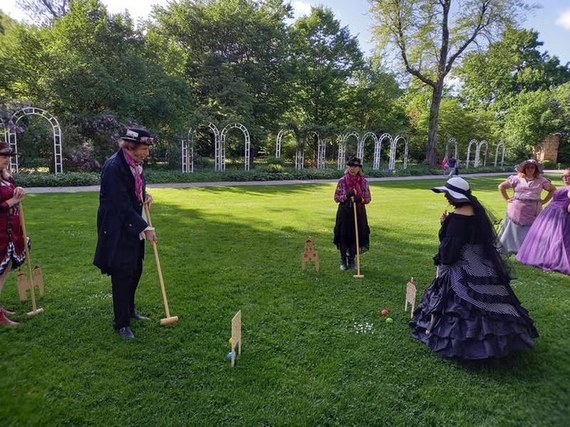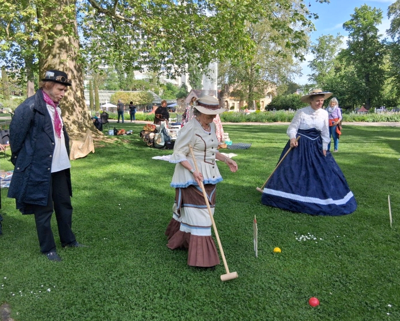 Die wenigen Tore für den Krocket-Ball stellen historische Stadtbauten dar.